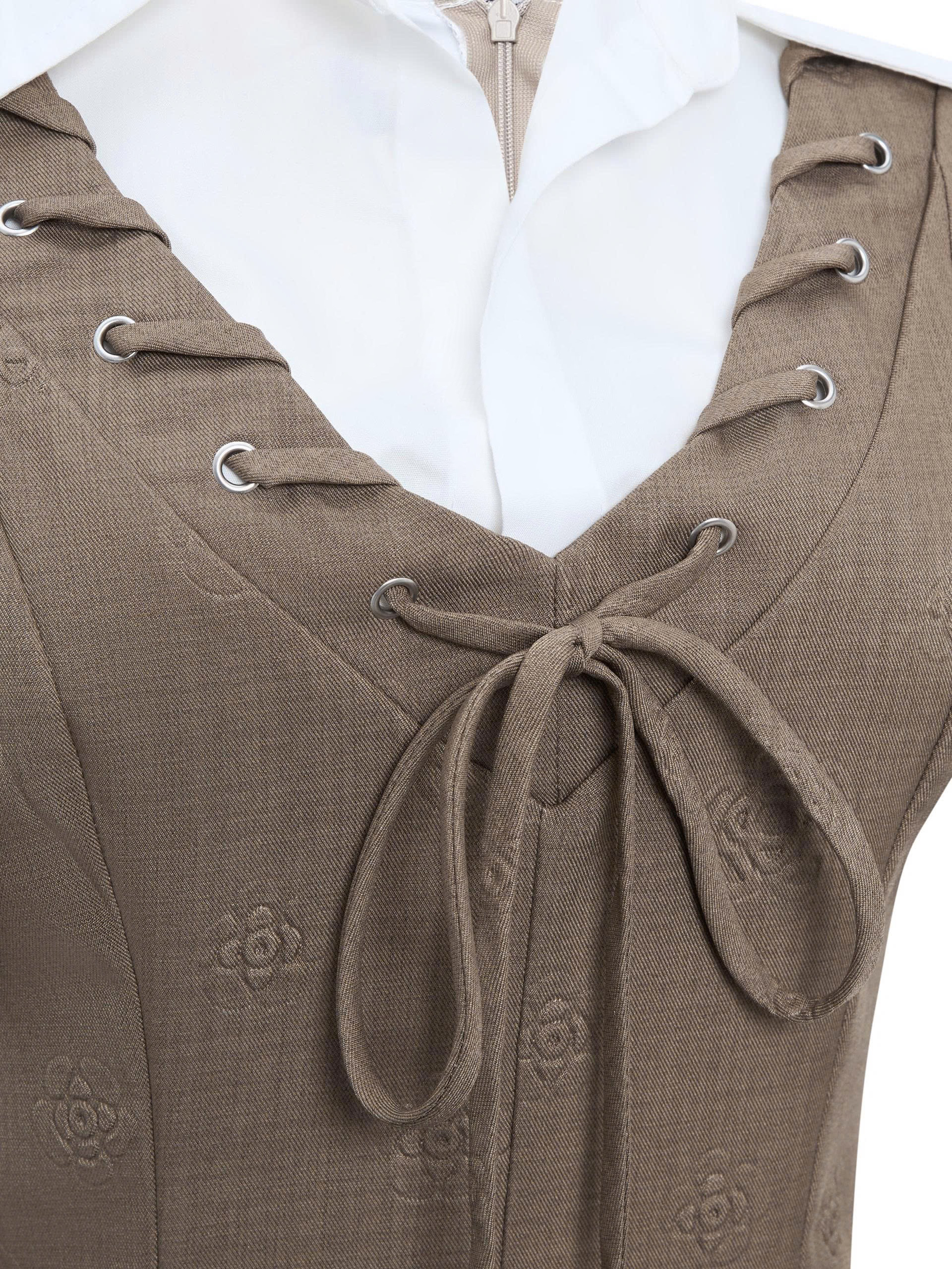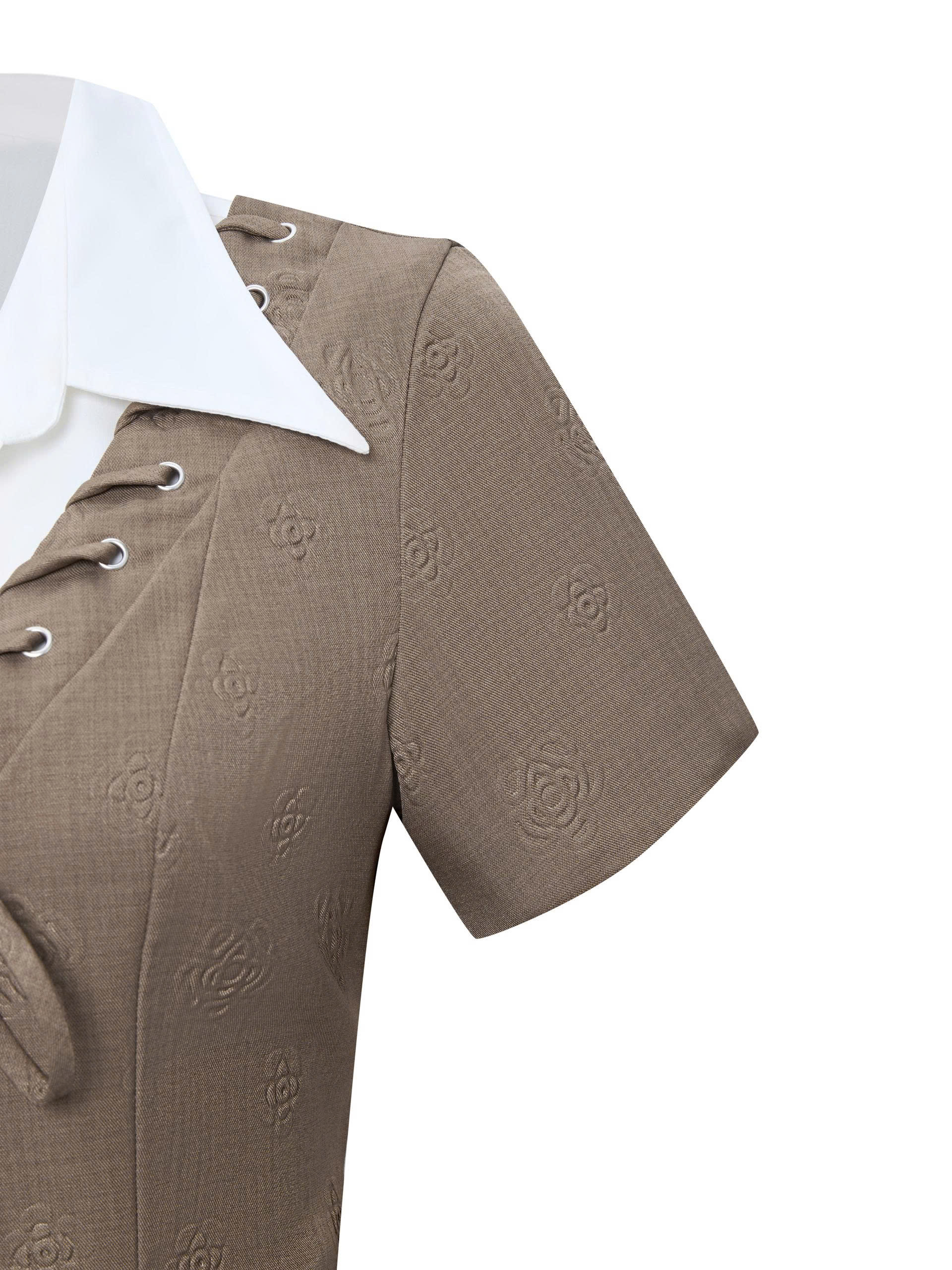 - Kiểu dáng : đầm 2 lớp , dáng ôm phần trên giúp fit dáng cho người mặc , phần dưới nhún phồng 2 bên hông tạo kiểu , đầm rã nhiều mảnh giúp lên form người mặc hơn , tay đầm ngắn , phần cổ sơ mi kiểu lịch sự phần thân trước đóng khuyên xỏ dây tạo điểm nhấn , có dây kéo thân sau .