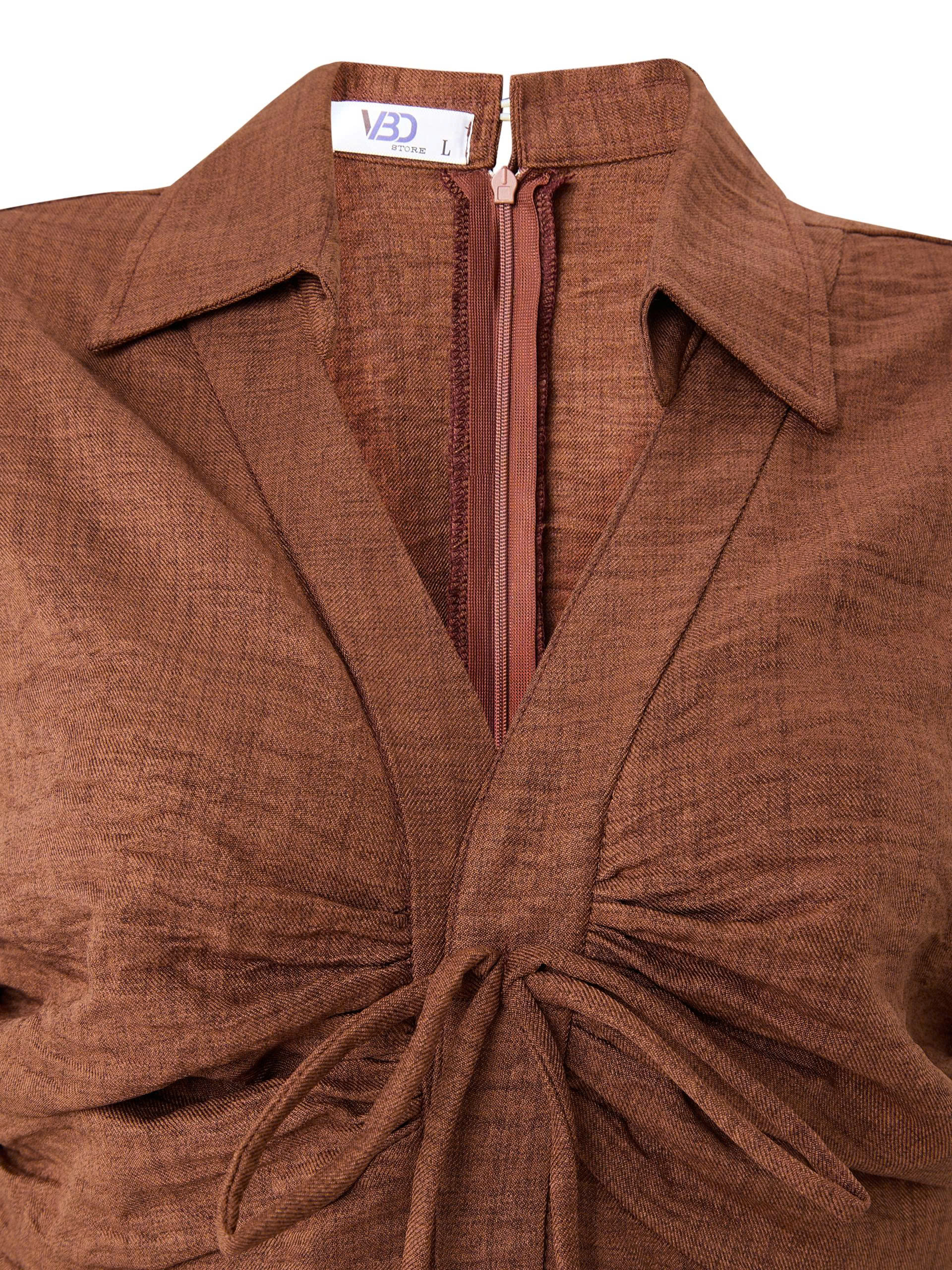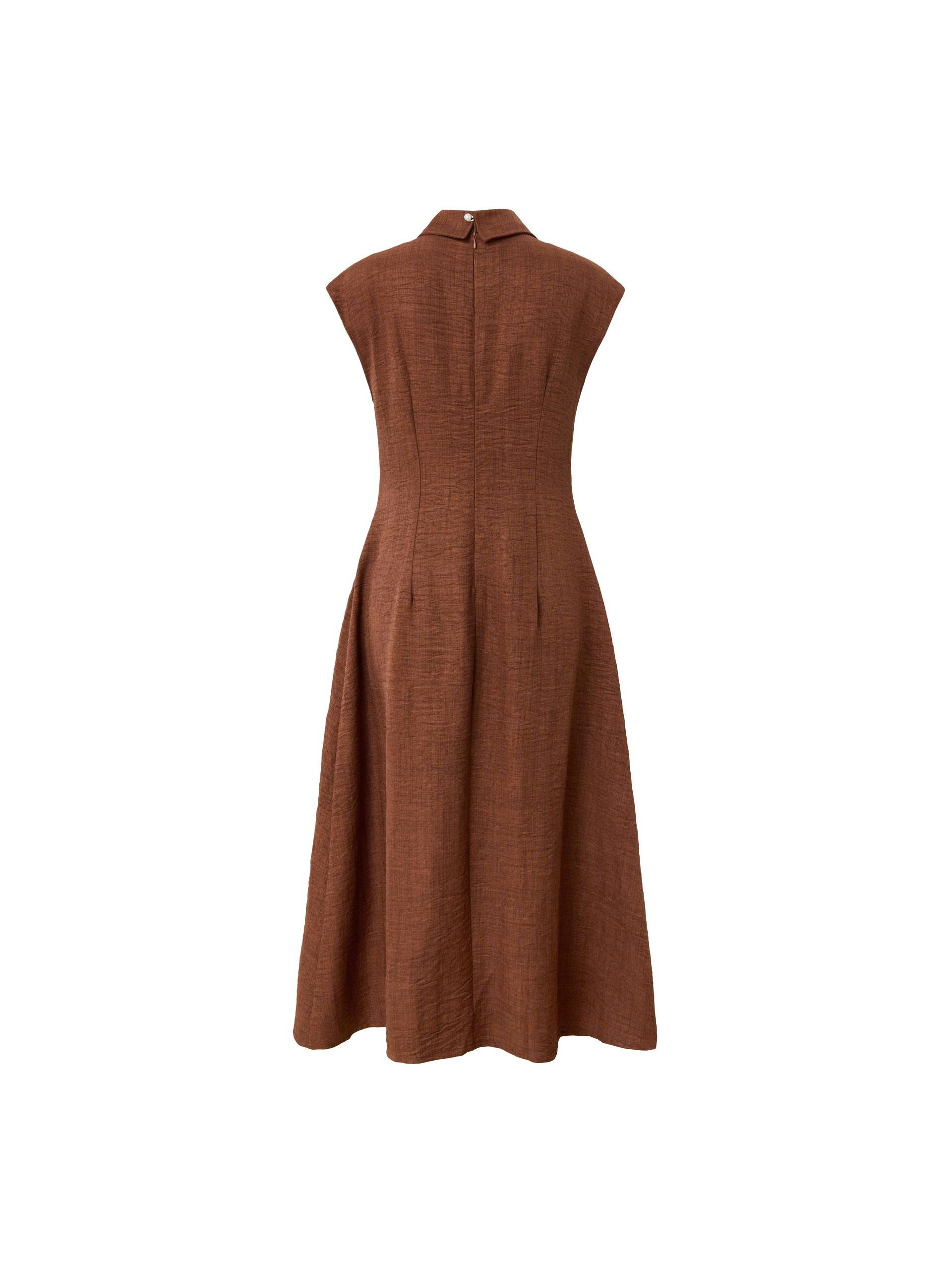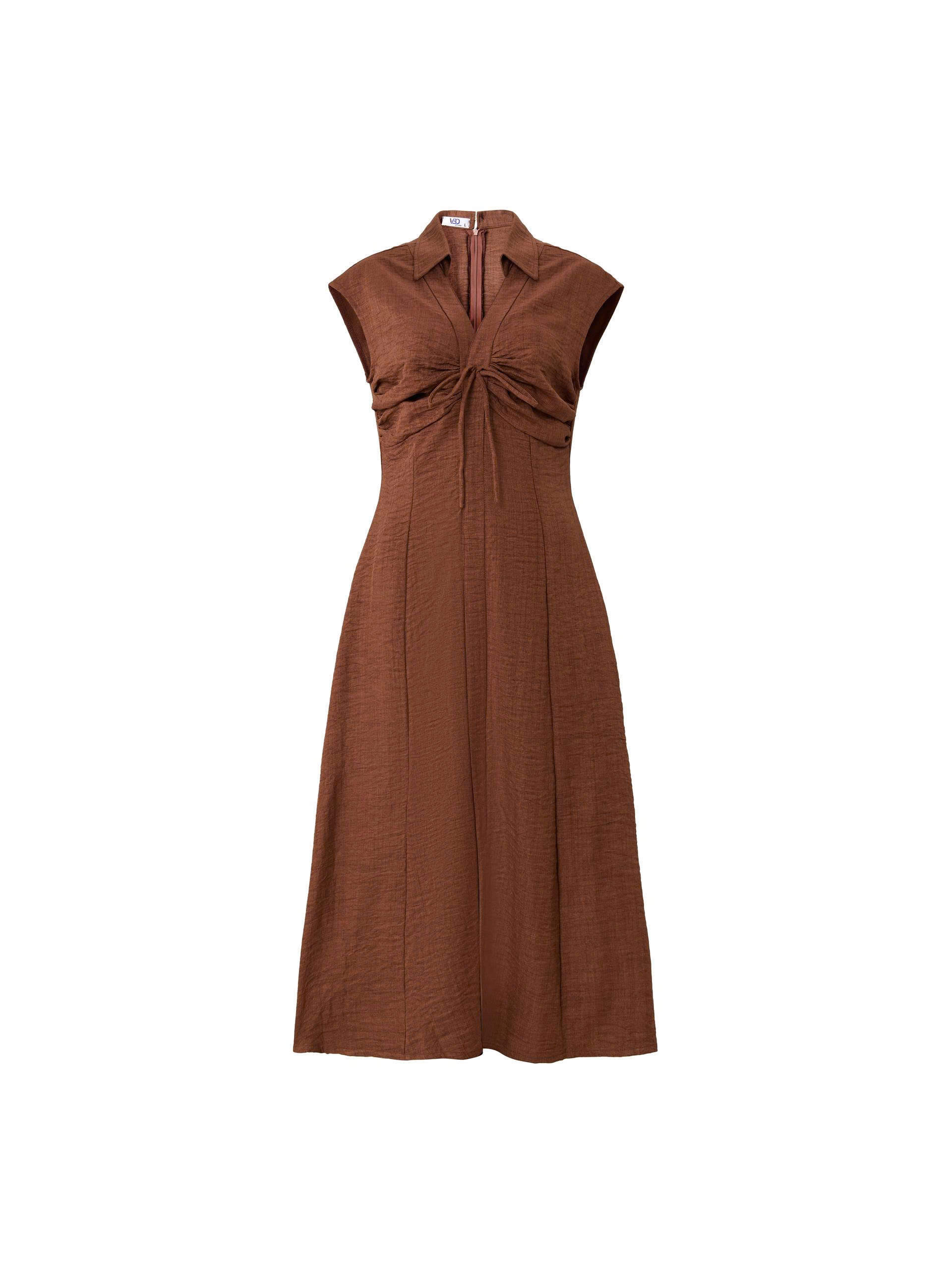 - Kiểu dáng : đầm dáng A dài có độ xòe nhẹ dưới tùng , 1 lớp , chân cổ kiểu sơ mi , phía sau có có nút kèm thun cài , thiết kế rã mảnh giúp fit dáng người mặc hơn , phần ngực nhún nhẹ tạo độ phồng cho ngực , đính 1 e nơ xinh xắn thân trước , phía sau có dây kéo .