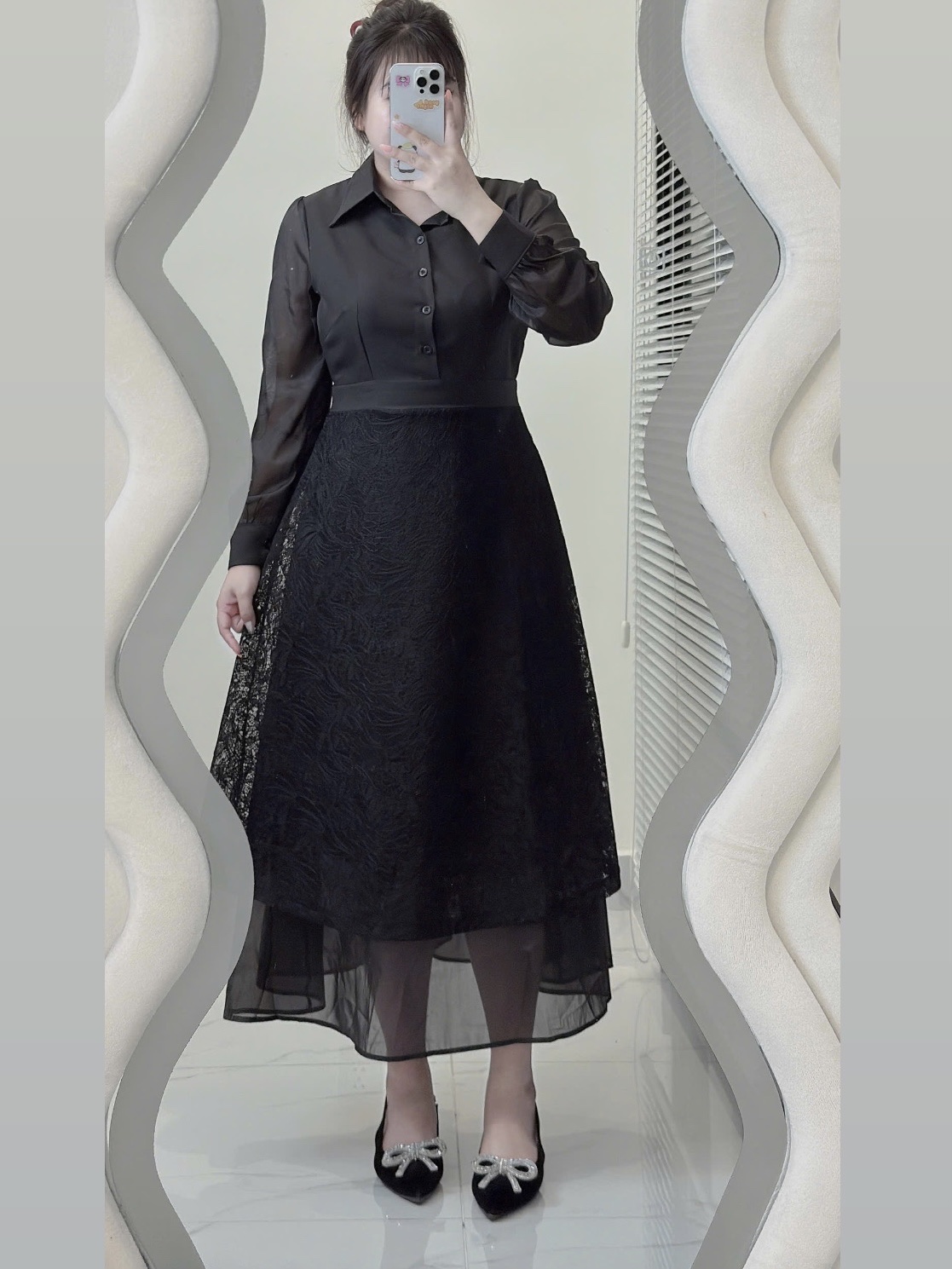Đầm dáng dài phối ren thân dưới kiểu tay dài bigsize DA156 dành cho nàng béo mập từ 55-95kg