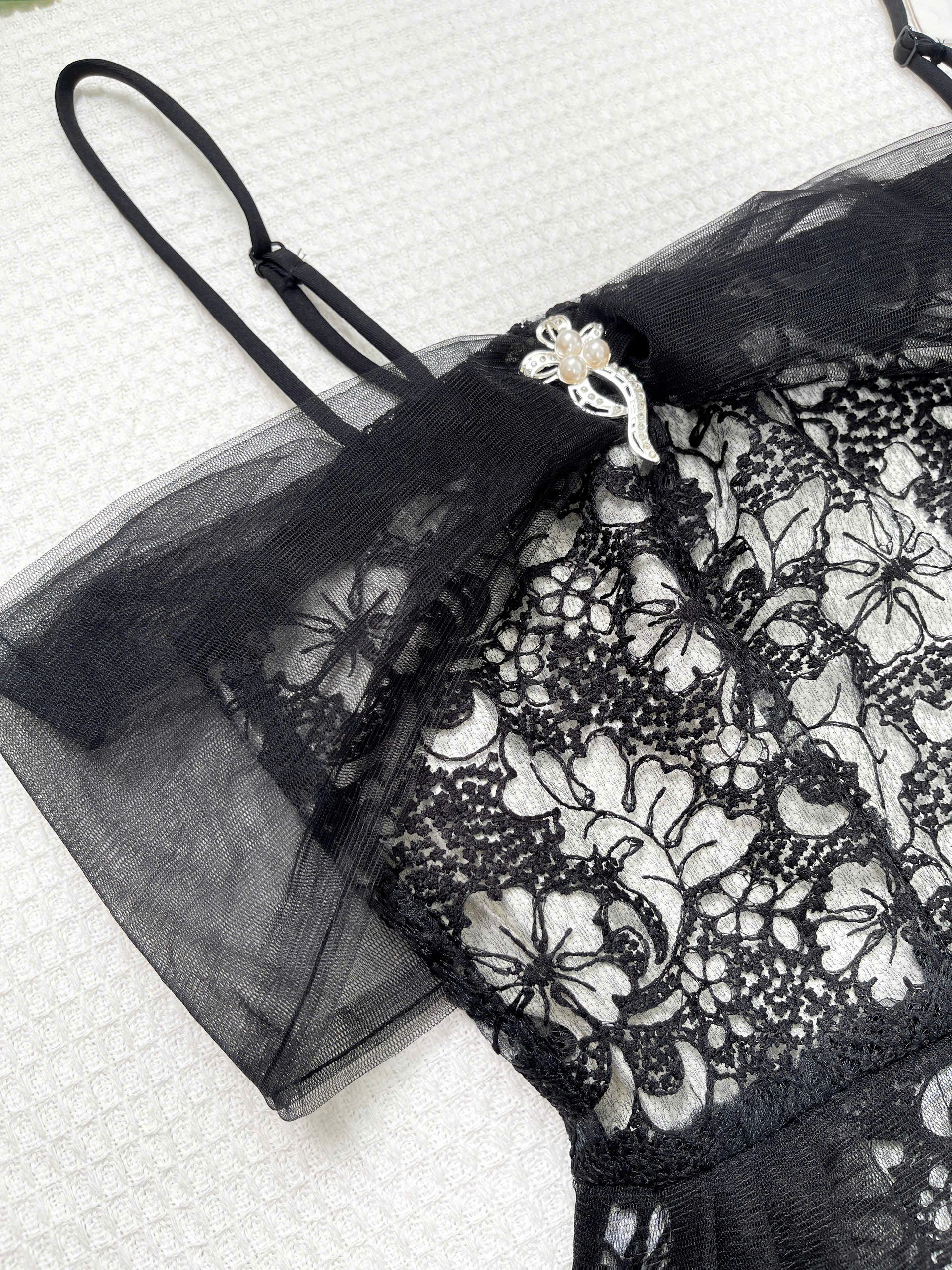- Chất liệu : vải chính là ren hoa nổi xinh xắn , mềm mại , không ngứa , phối cùng lưới có độ đanh nhẹ giúp lên form đẹp hơn , bên trong là lớp lót lụa 100d có độ dày vừa phải , thấm hút mồ hôi tốt .