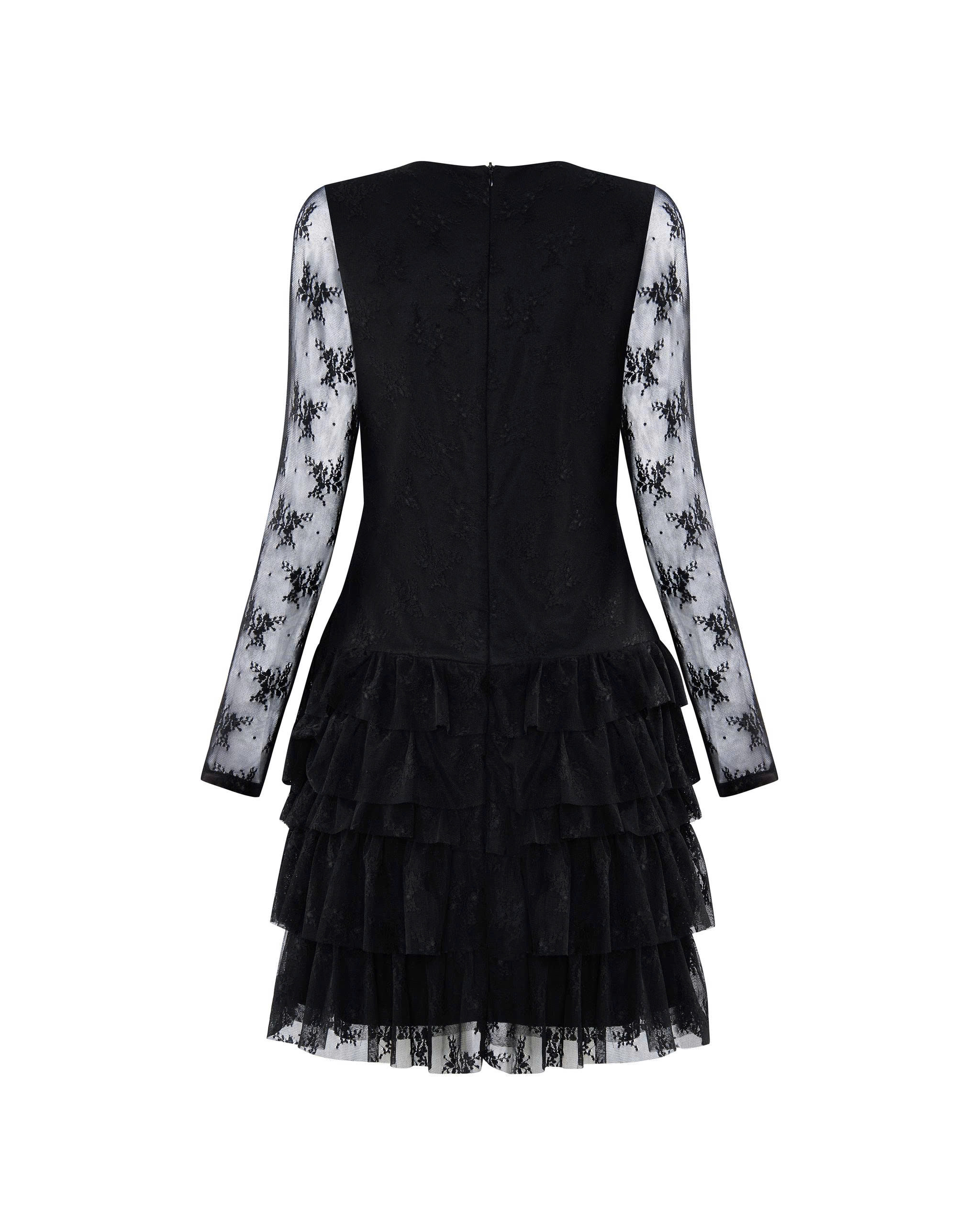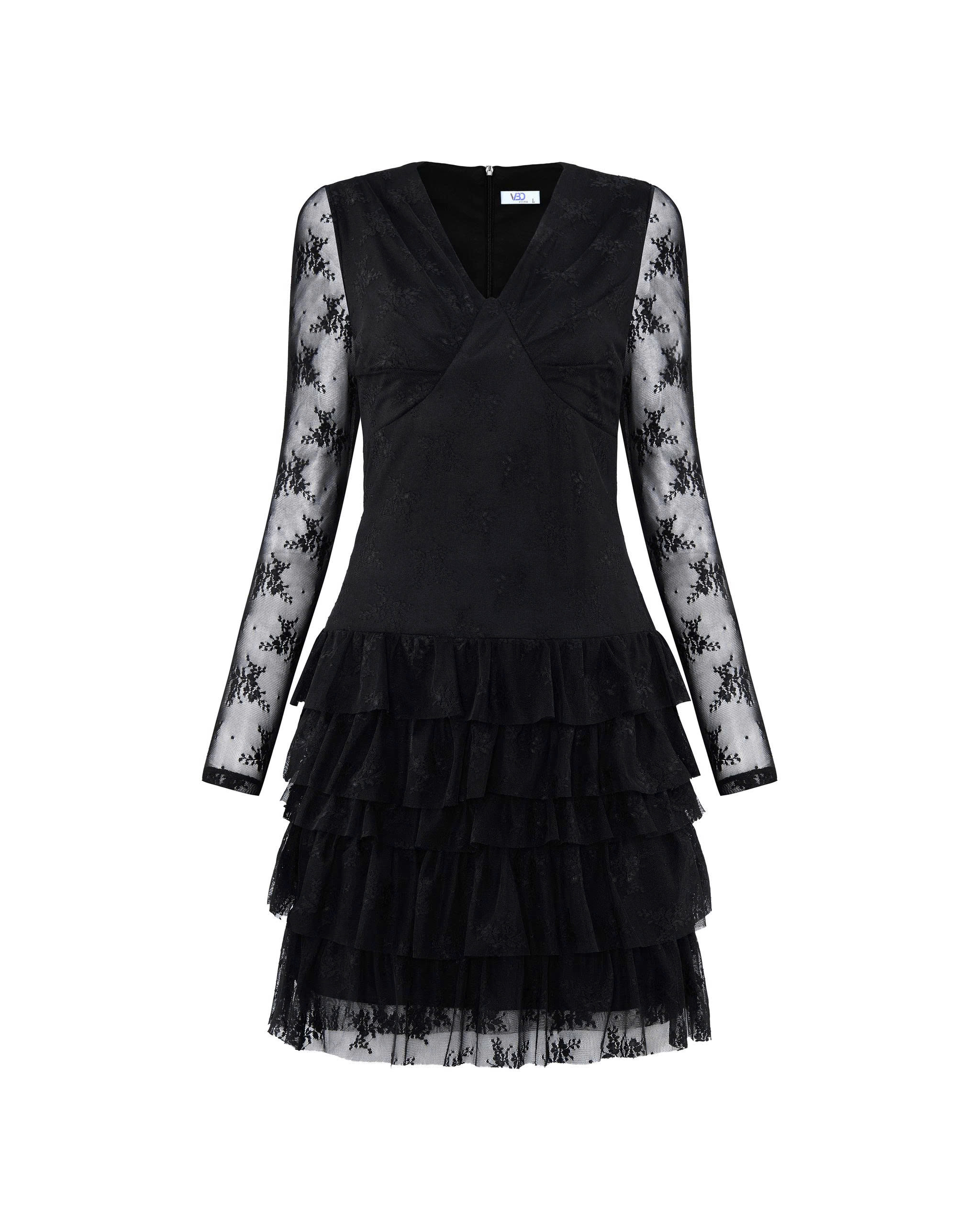 - Kiểu dáng : đầm dáng A 2 lớp , form ôm , phần đầm kiểu cổ tim , ngực cách điệu phối nhún làm điểm nhấn , tay đầm dài , thiết kế phần túng nhiều tầng và nhún , dây kéo thân sau giúp người mặc dễ dàng hơn .