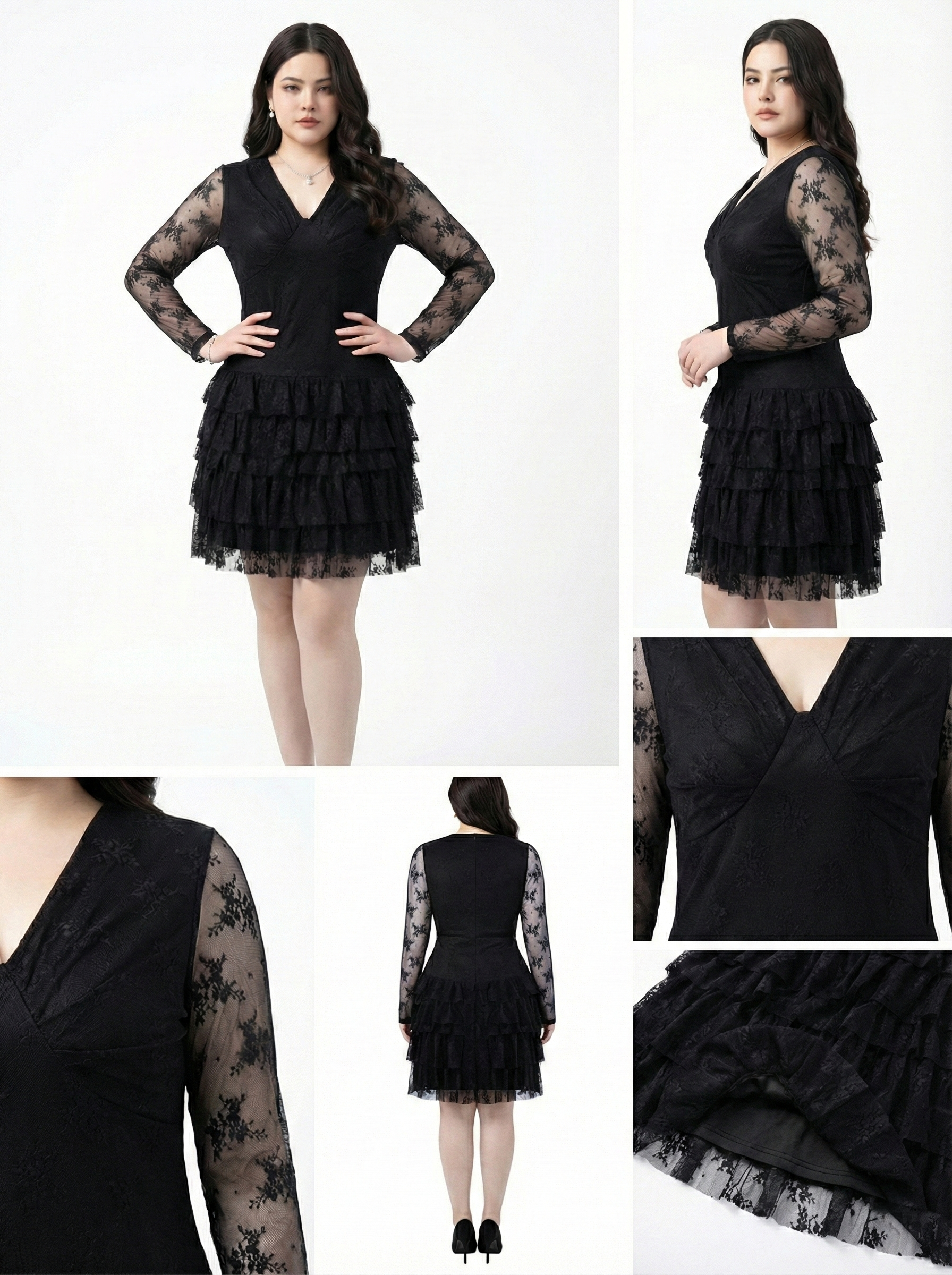 Đầm ren dáng A nhiều tầng bigsize DA172(L-3XL) dành cho nàng béo mập từ 55-95kg
