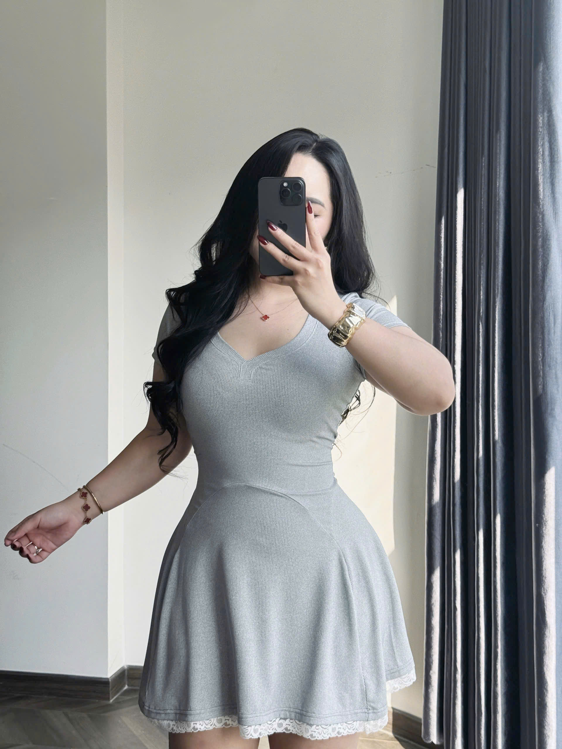 Đầm thun dáng A xòe phối ren bigsize DA161 dành cho nàng béo mập từ 55-95kg