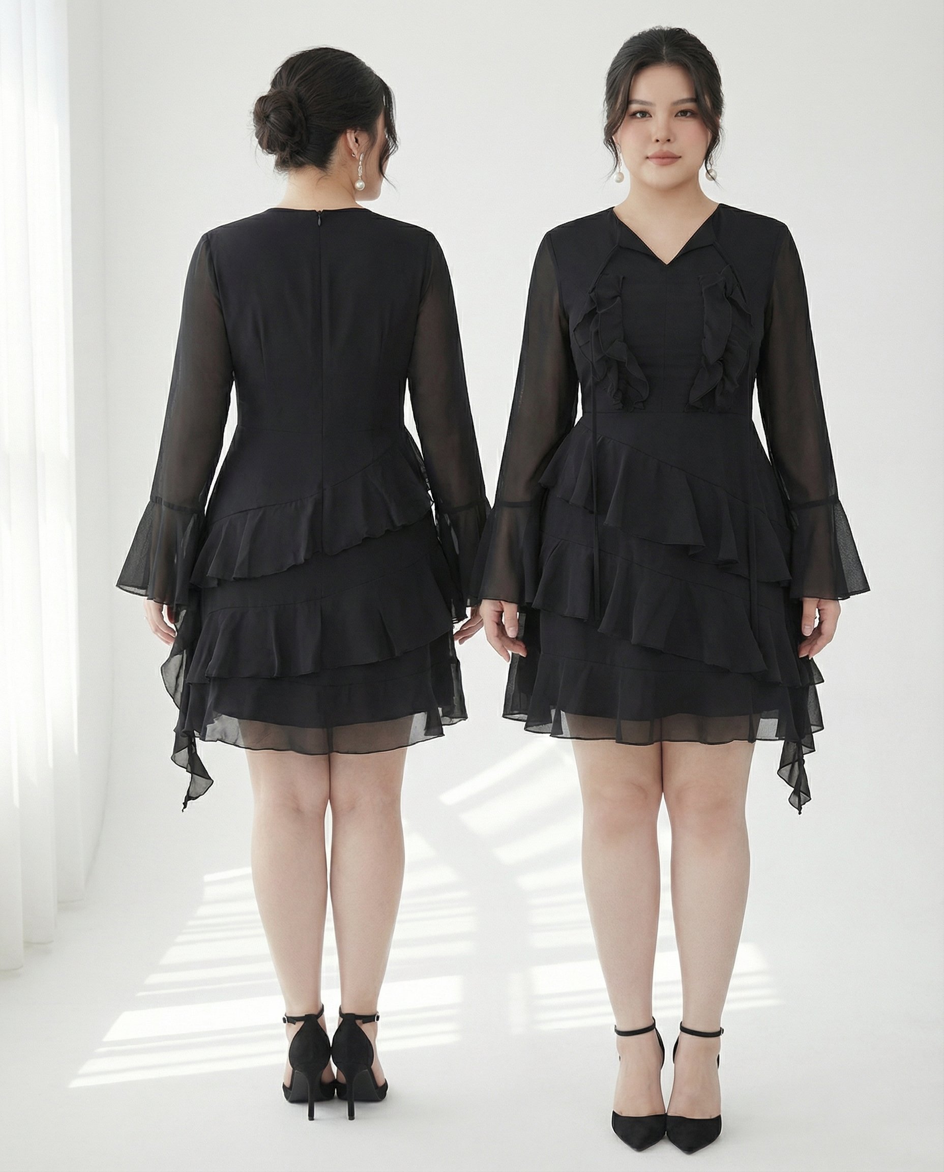 ĐẦM VOAN KIỂU NHÚN PHỐI NƠ BIGSIZE- THỜI TRANG BIGSIZE