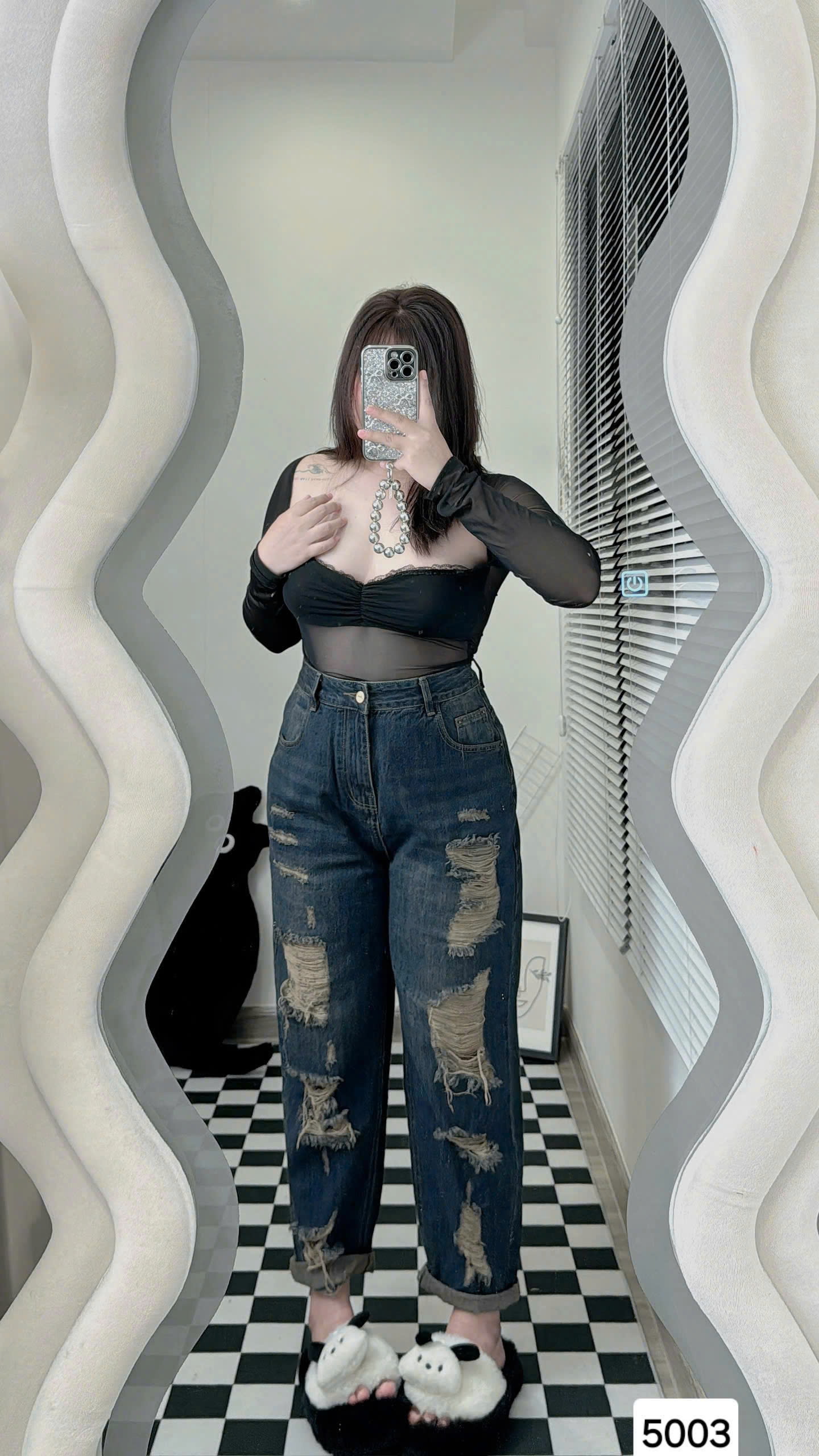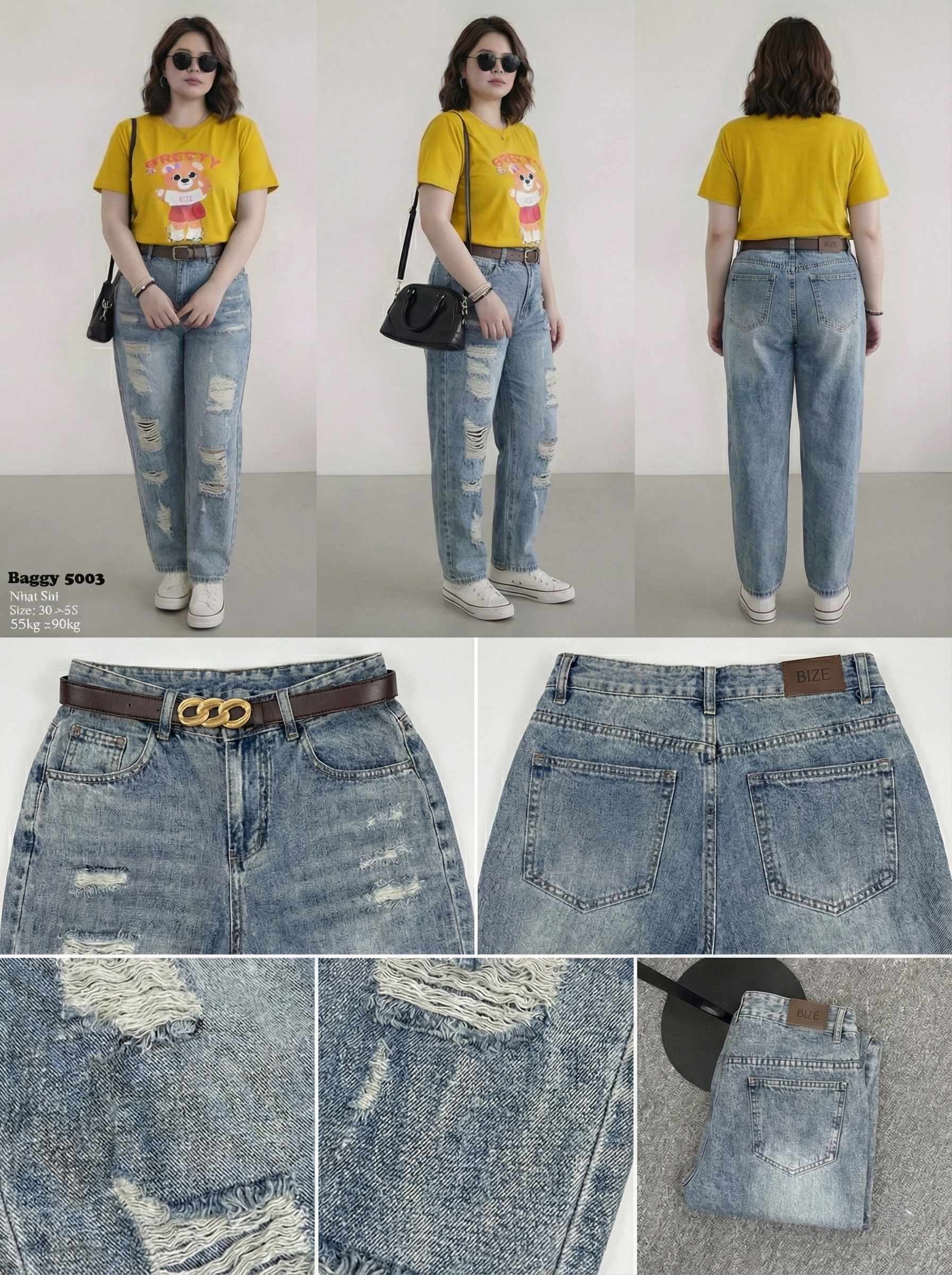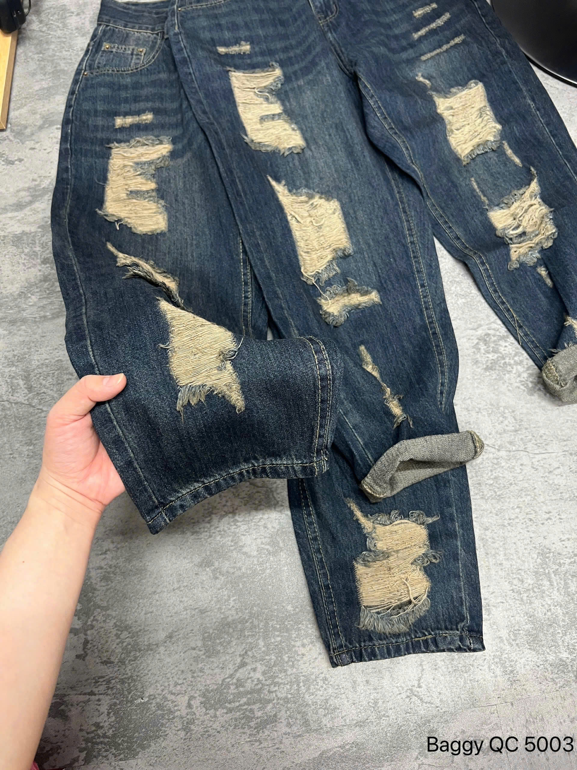 Quần baggy jean rách nhiều bigsize QJ5003 dành cho nàng béo mập từ 55-90kg