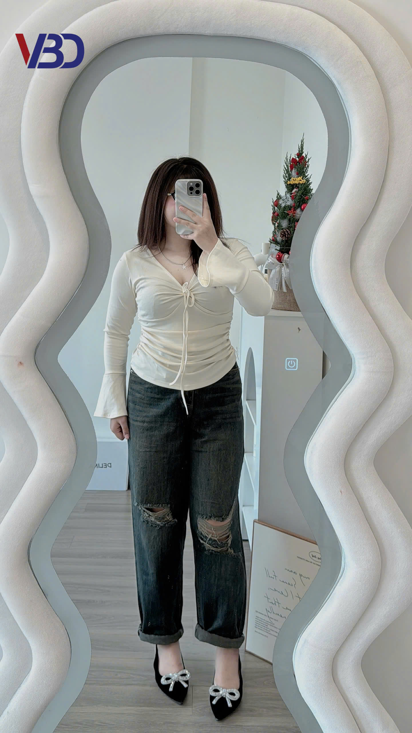 👉 Kiểu dáng : quần jean ống baggy lưng cao , lưng thun phía sau co giãn tốt , có túi thật trước và sau , thân trước rách tạo điểm nhấn cho quần .