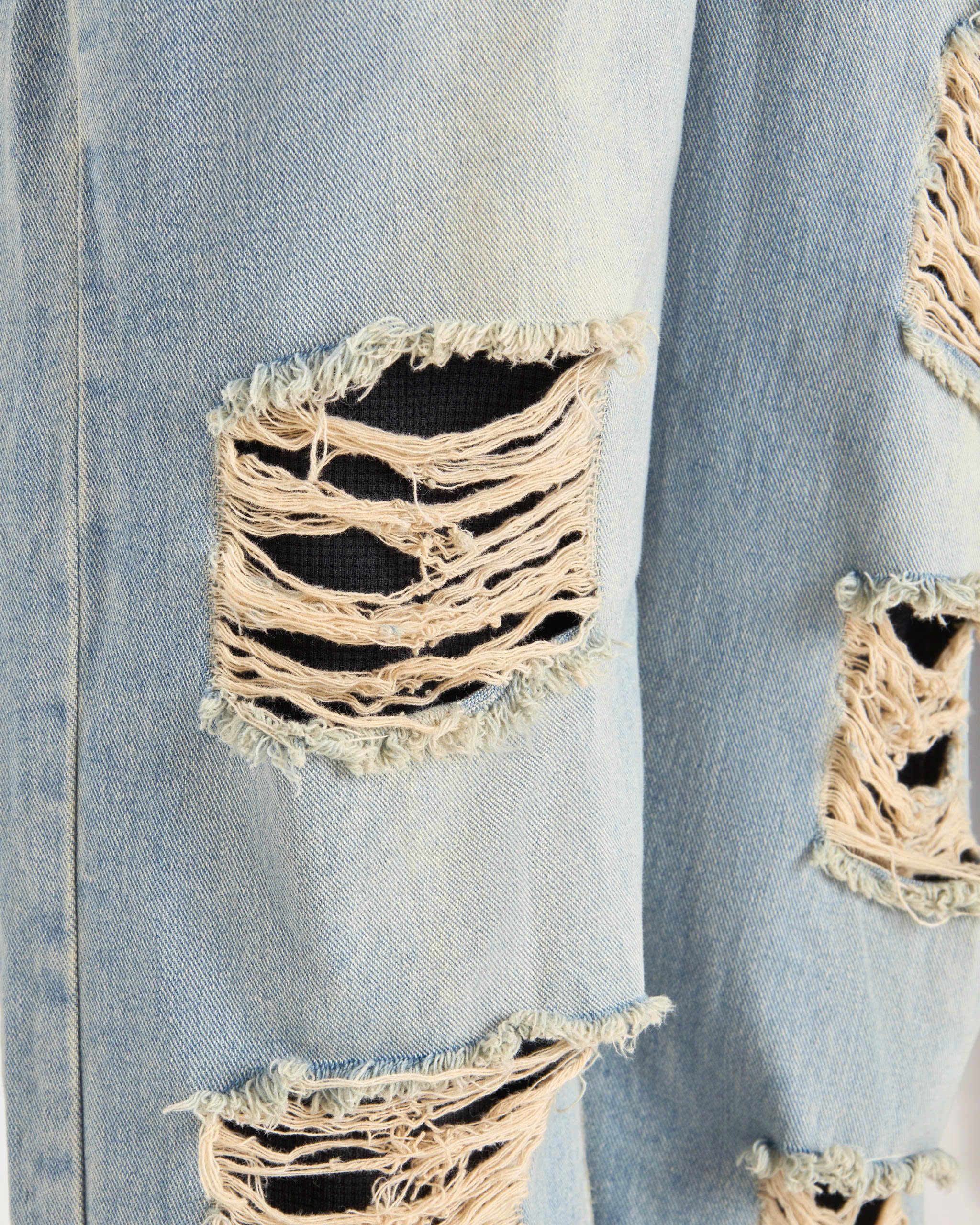 Quần jean suông 97cm siêu rách bigsize QJ5029