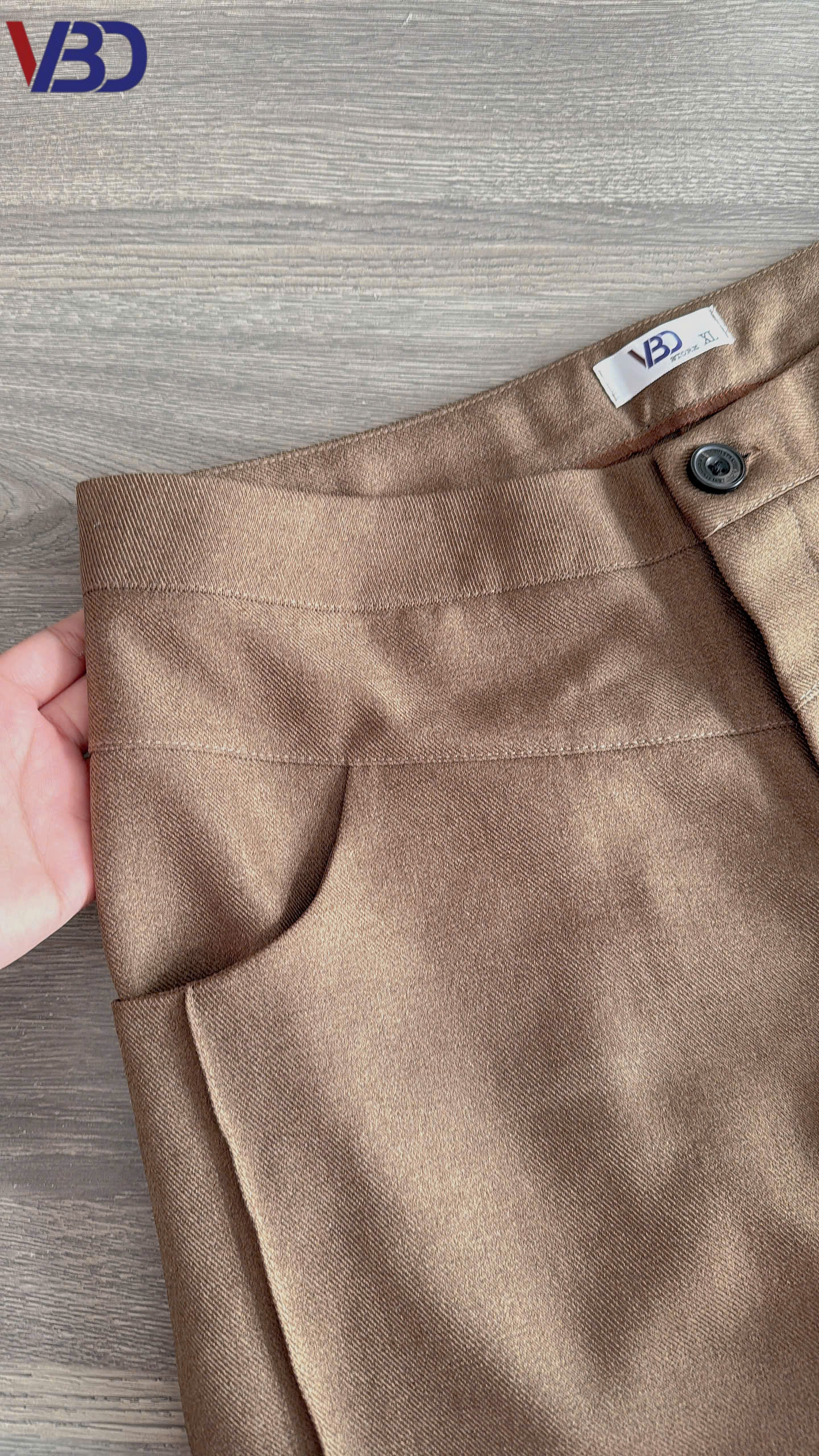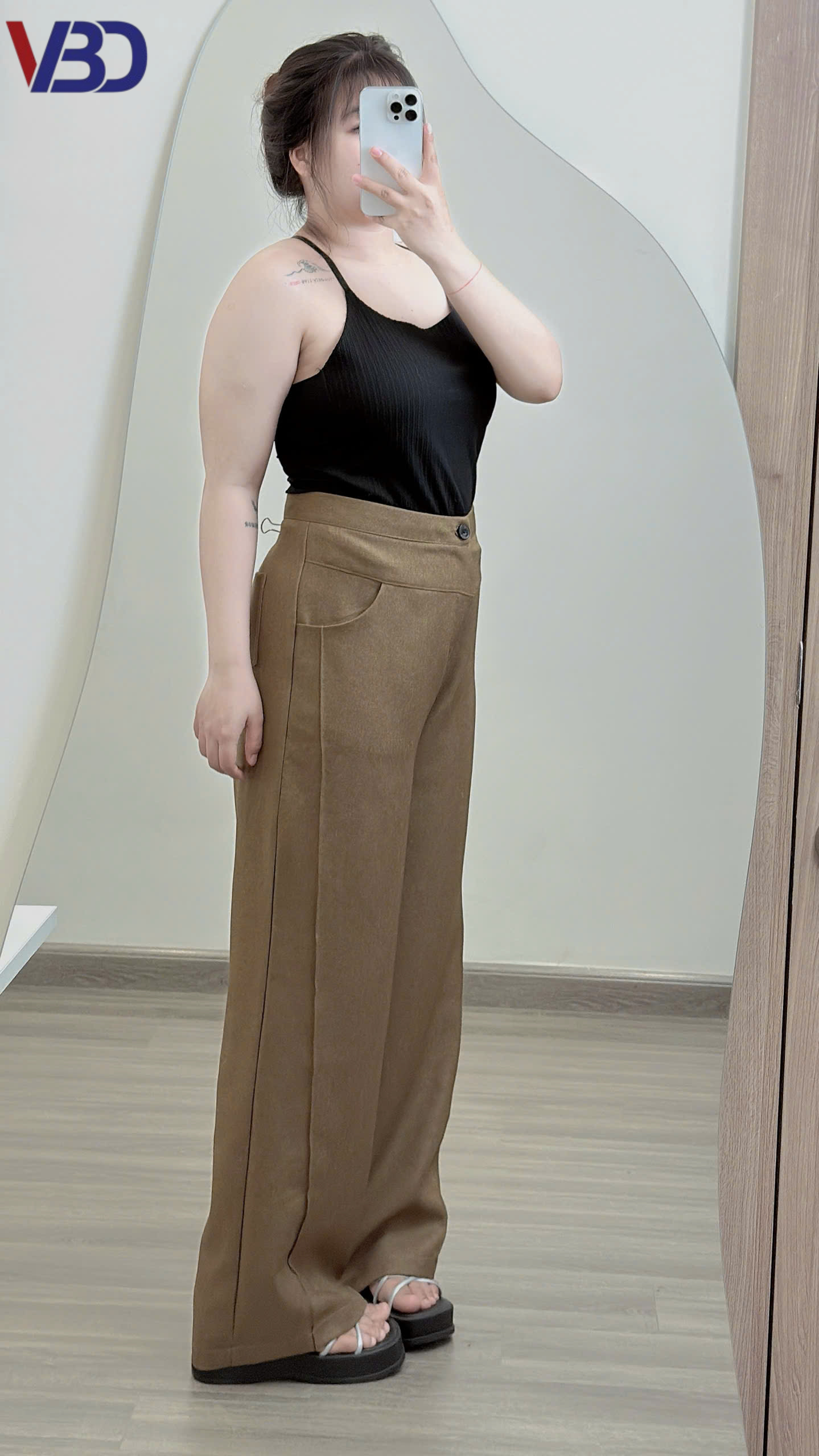 👉 Kiểu dáng : quần suông kiểu , dáng dài , có túi thật trước và sau , phần thân trước kiểu viền ngang cùng đường viền xéo kiểu trên quần tạo điểm nhấn .