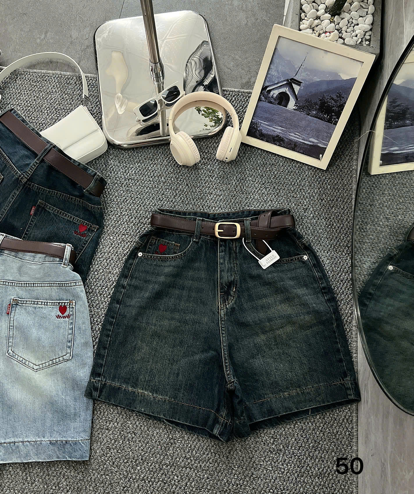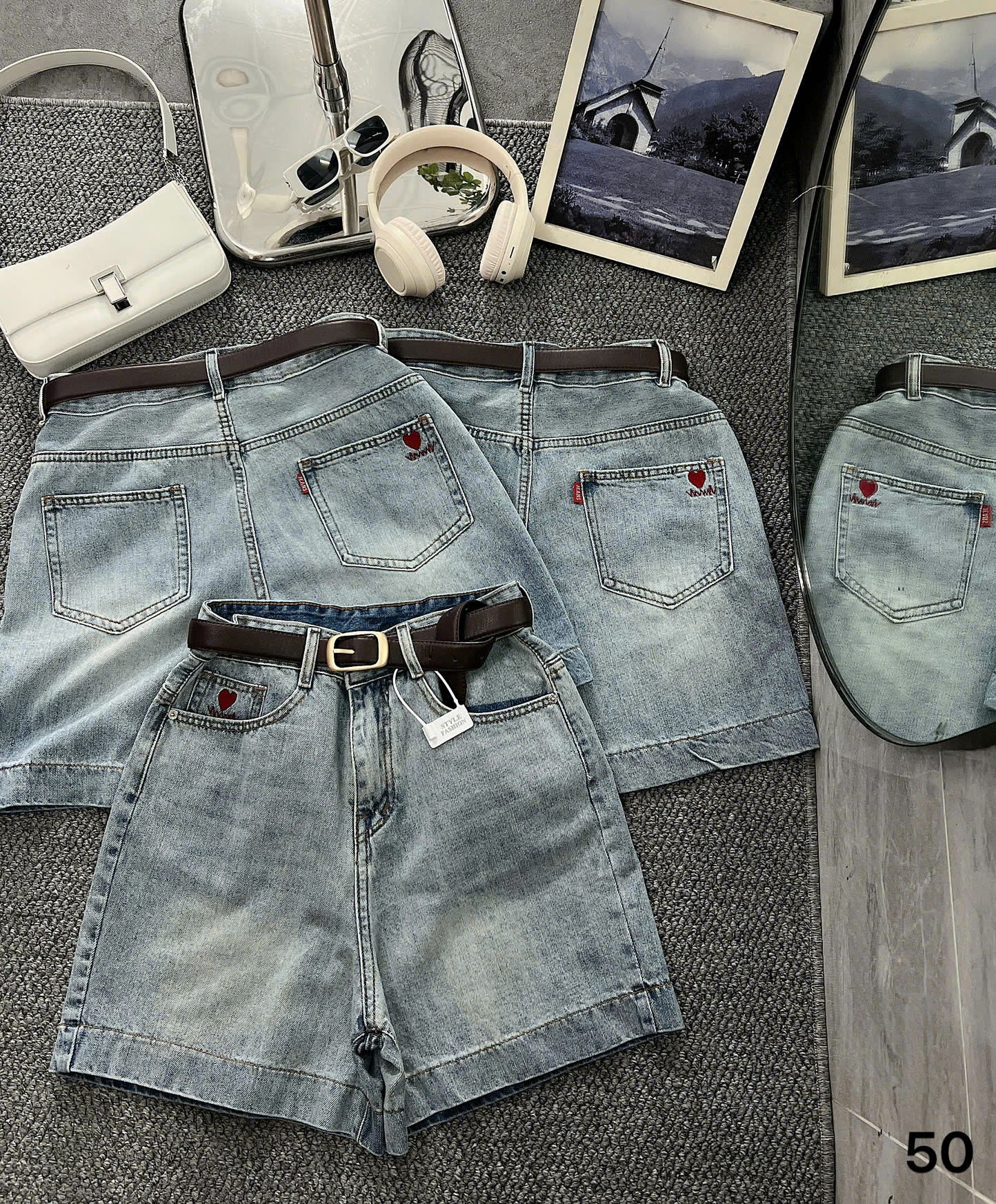 Quần short jean ngố thêu tim bigsize QSJ050 dành cho nàng mũm mĩm từ 55-90kg