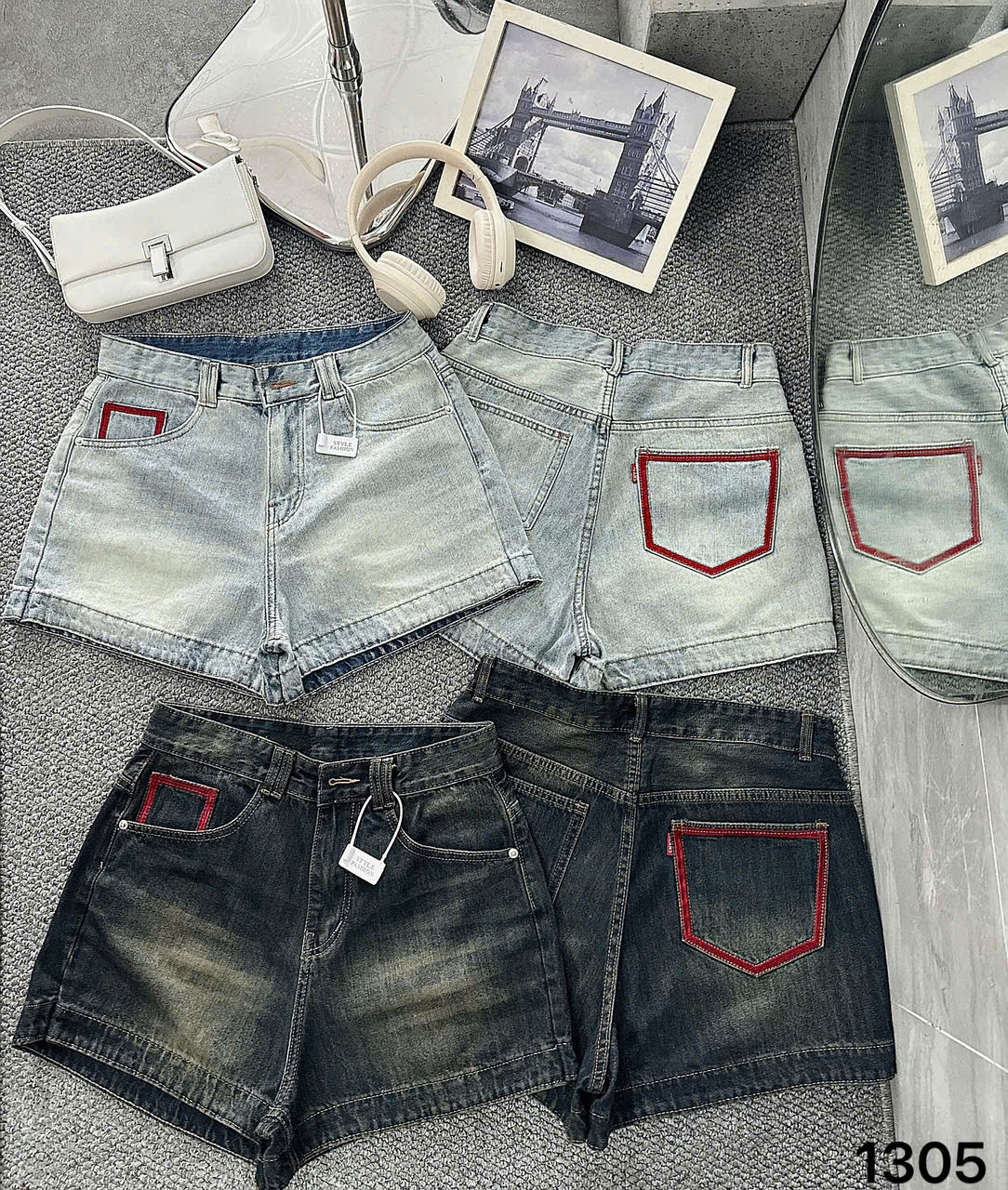 Quần short jean viền túi kiểu bigsize QSJ1305 dành cho nàng béo mập từ 55-90kg