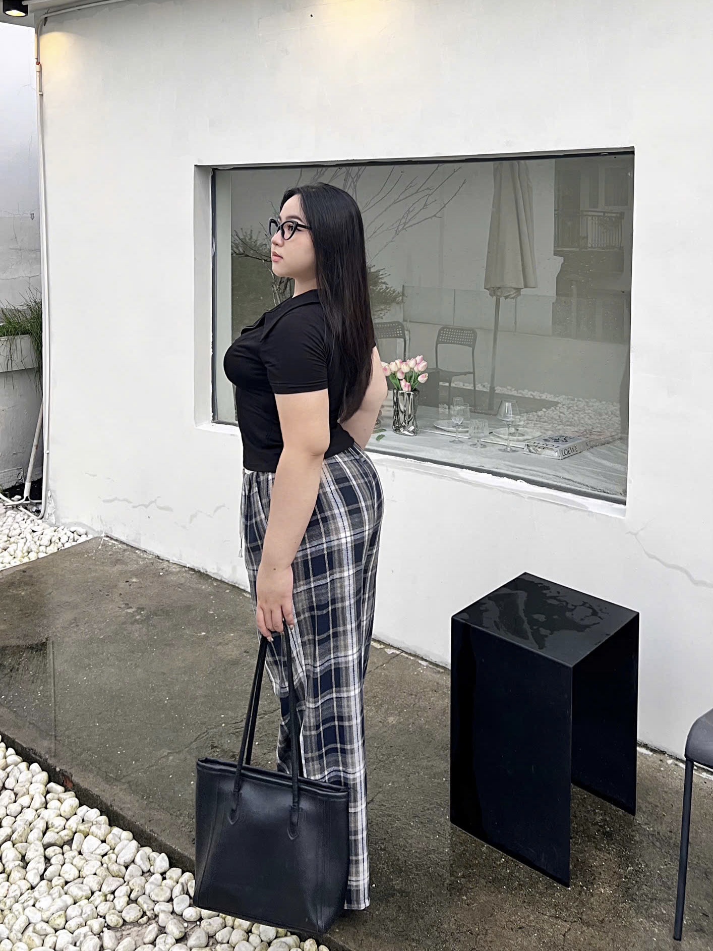 Quần suông nỉ caro phối lưng kiểu bigsize QD032 dành cho nàng mũm mĩm từ 55-95kg