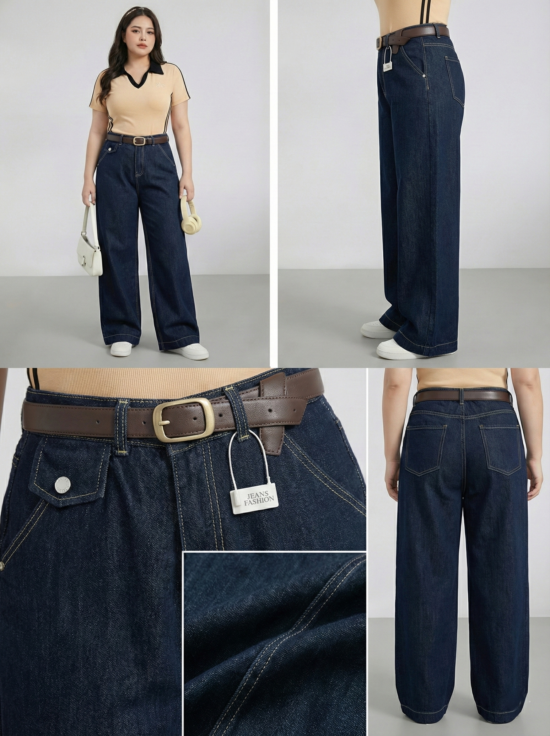 Kiểu dáng: Quần Jeans dài, ống suông rộng, lưng cao.