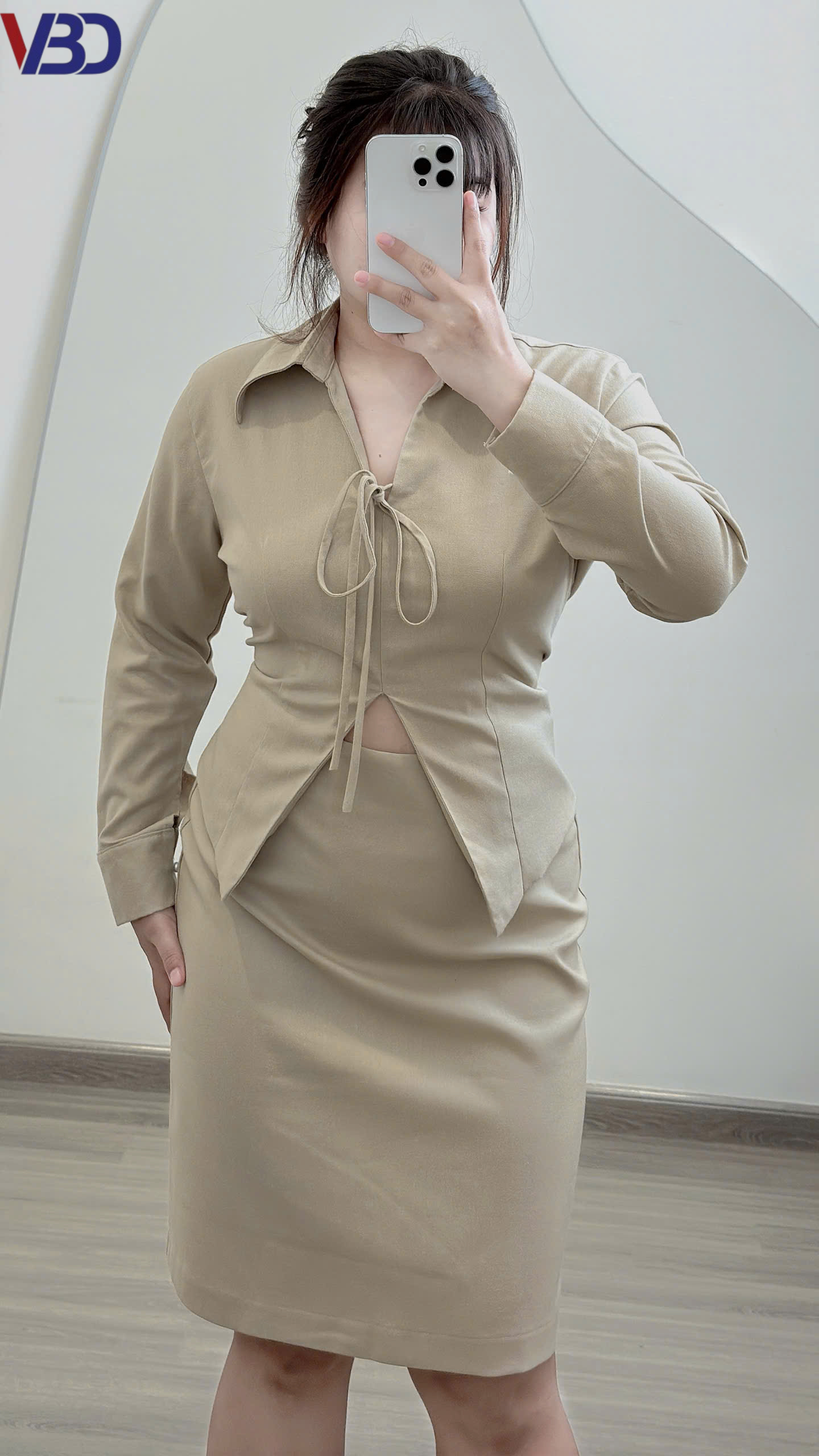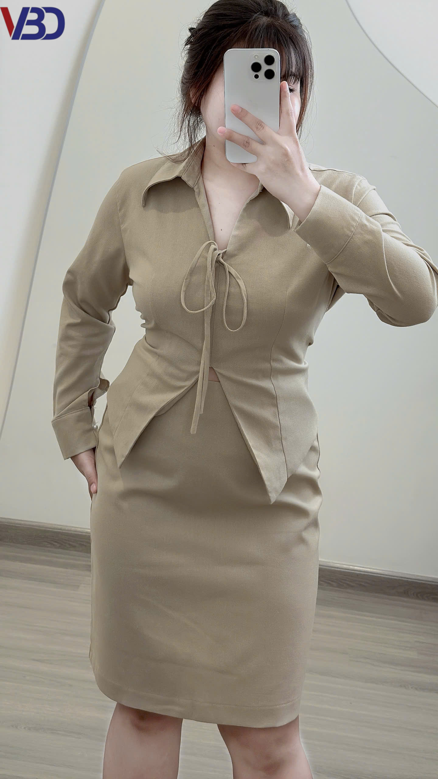 SÉT ÁO KIỂU KÈM CHÂN VÁY MIDI BIGSIZE (SET03)- THỜI TRANG BIGSIZE